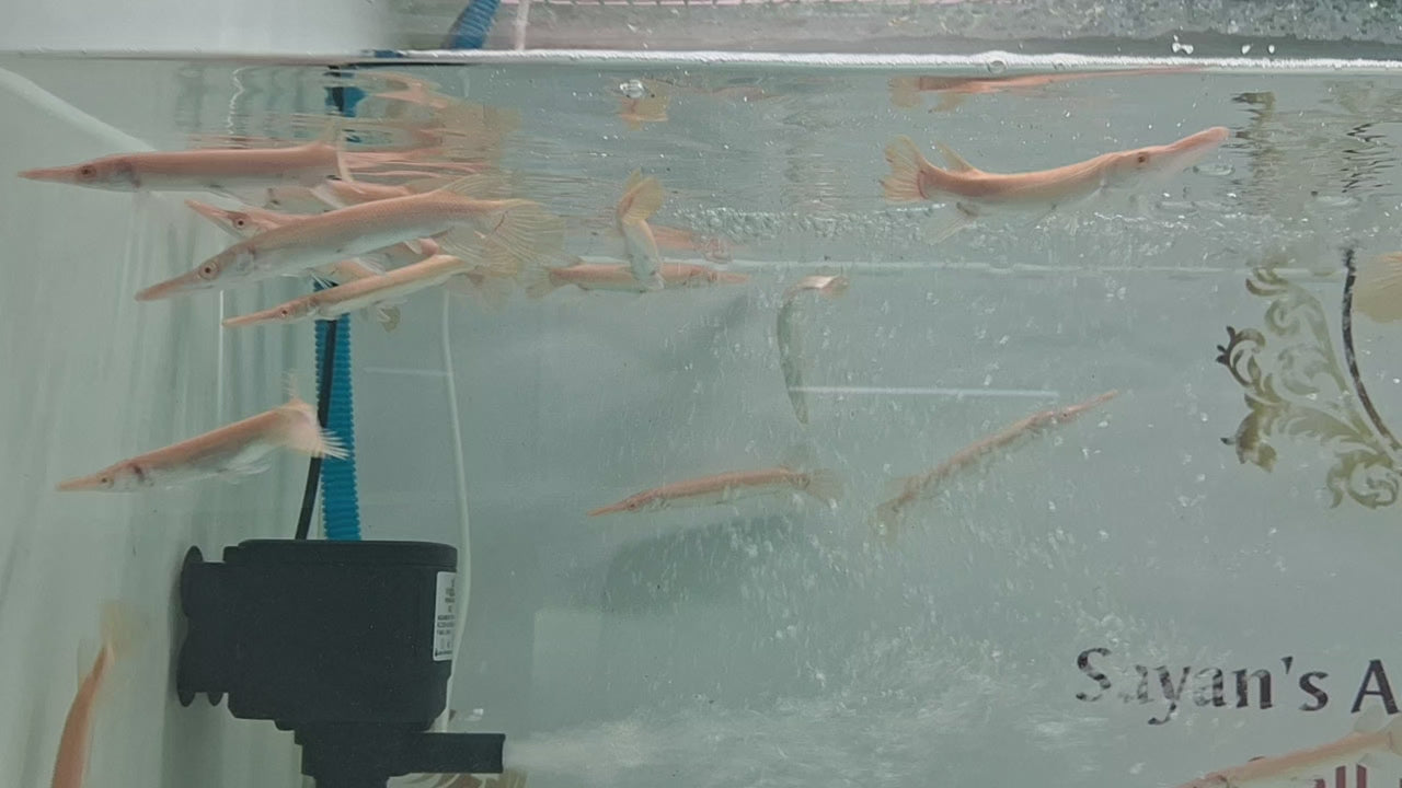 Albino Golden Gars are solitary and territorial, especially when young. They can be housed with other large, non-aggressive fish, but it's best to avoid housing them with smaller fish that could be seen as food. They are known to jump, so a tight-fitting lid is essential.